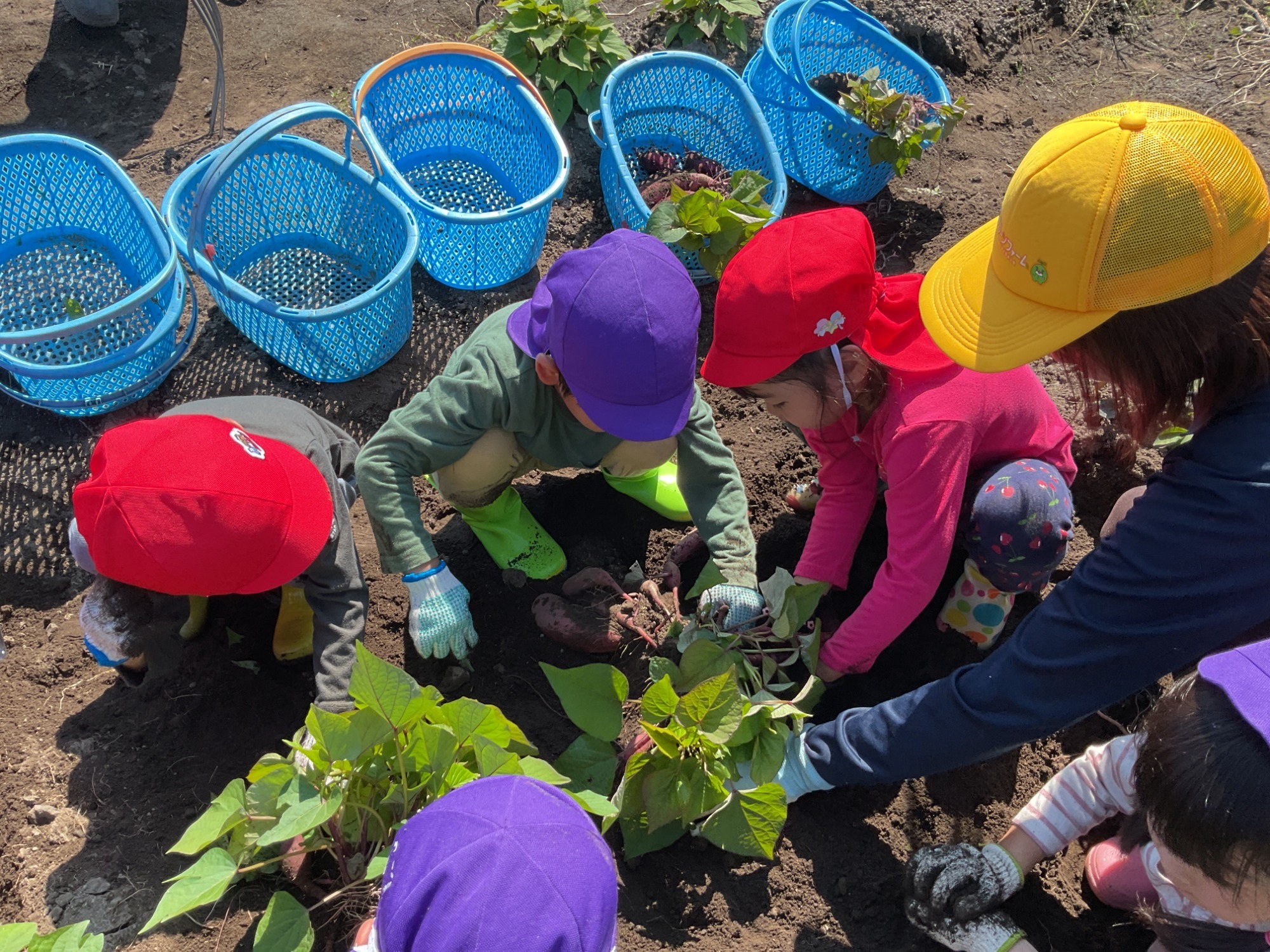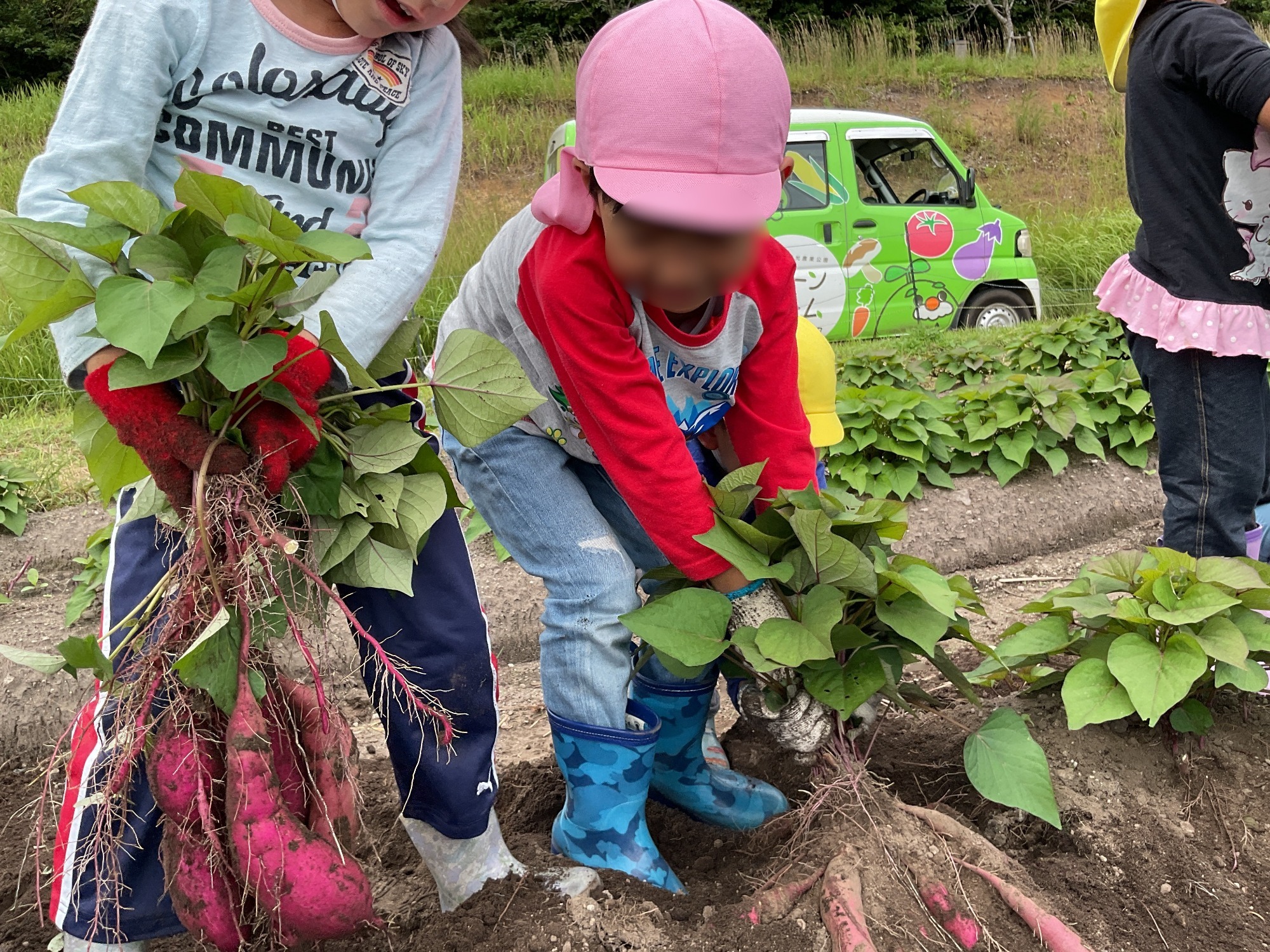 「あと少し!」と声を掛け合いながら掘り進め…土の中から大きな芋が顔を出すと大歓声が上がりました!!